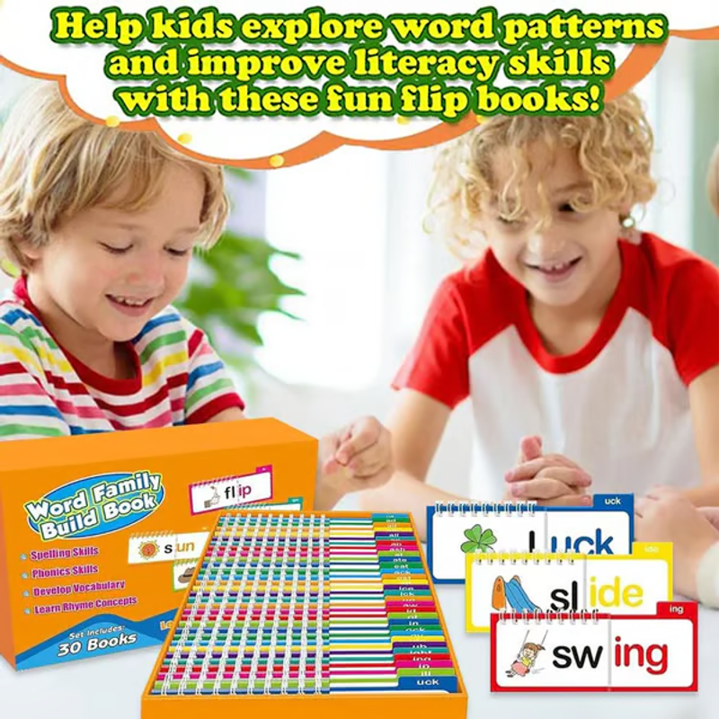 The Perfect Gift ! ! ! Explore Essential Word Families - This set of 30 word family flip books introduces young learners to foundational word families. Each word family includes a corresponding word and vivid image, making it easier for children to recognize patterns and build reading skills with confidence.