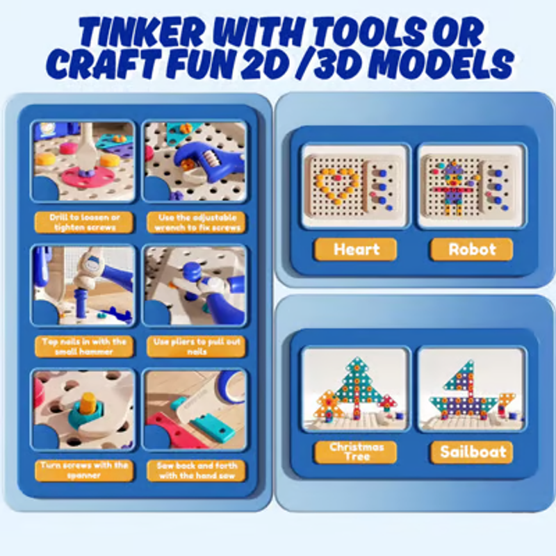 Kids can create flowers, windmills, planes, and more using the included parts, or role-play as little builders using the tools. Encourages creativity, critical thinking, and hands-on exploration!