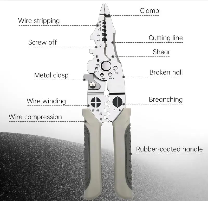 This wire stripper works perfectly for stripping, cutting and crimping wires, helping you handle various wiring tasks efficiently. The ergonomic, non‑slip handle provides a comfortable and stable grip during long hours of work. Built with sturdy and durable material, it ensures stable performance and long service life for both home and professional use.