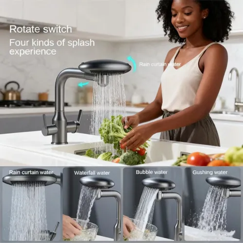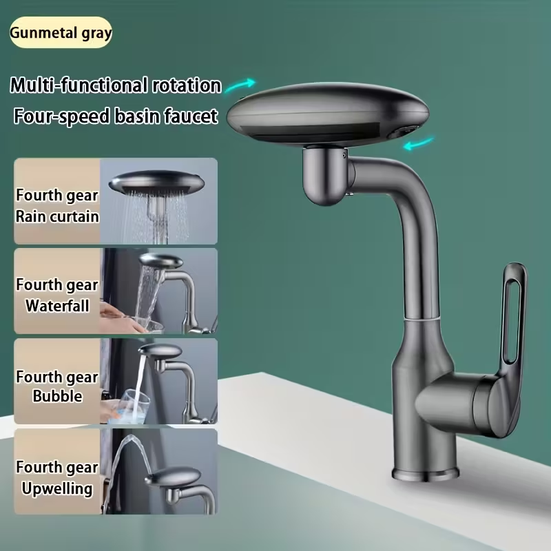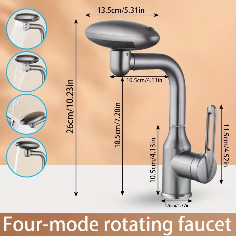 Upgrade your bathroom with this innovative multifunctional basin faucet, designed for comfort, hygiene, and modern aesthetics. Featuring a unique rotating spray head and four selectable water outlet modes, this faucet delivers a versatile and enjoyable washing experience for everyday use.